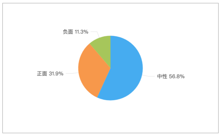 该时段内,关于境内“多所高校停招外语专业”的舆情情感倾向中,中性舆情占比最多,达到56.8%;正面舆情次之,占比31.9%;负面舆情较少,占比11.3%。