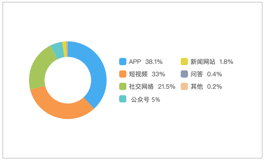 该时段内,境内有关“河南方城学校火灾25人被处分”的舆情主要集中在新闻APP平台,相关舆情量约占总量的38.1%,其次为短视频约占33.0%,社交网络约占21.5%。