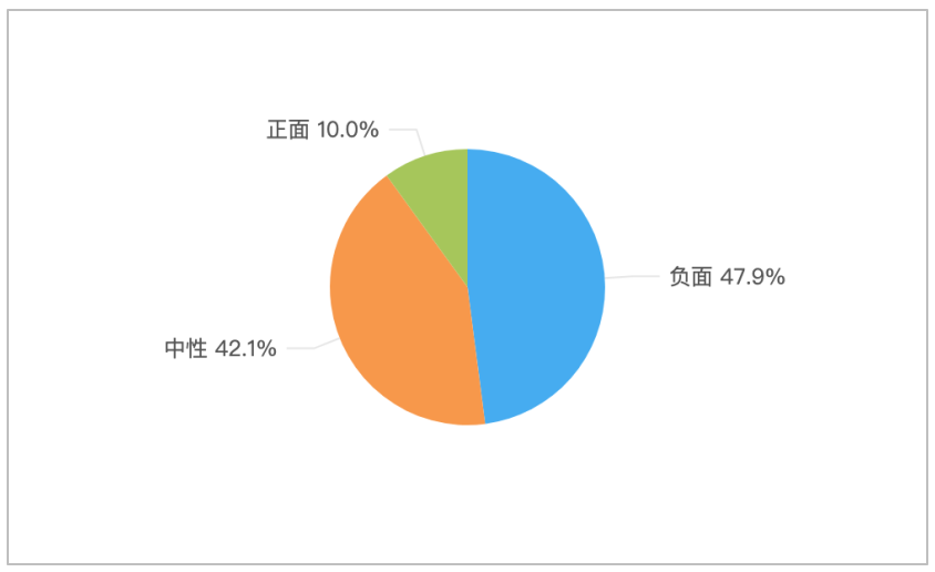 该时段内,境内有关“河南方城学校火灾25人被处分”的舆情中,负面舆情占比最多,达到47.9%;其次是中性舆情,占比42.1%;正面舆情占比较少,仅占10.0%。