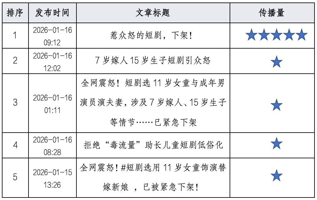 该时段内,有关“短剧选用11岁女童演替嫁新娘”的媒体报对此次事件的报道主要观点可归纳如下: