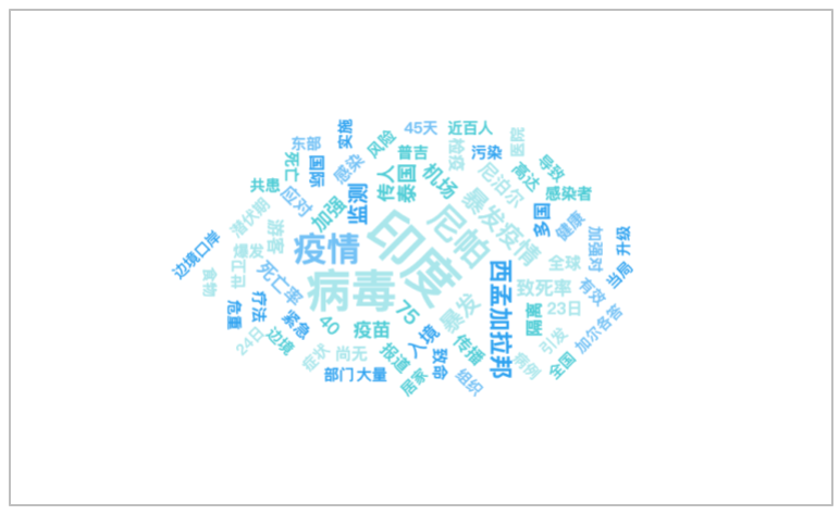 该时段内,有关“印度暴发尼帕病毒疫情”的话题提及频次较高的词语有“印度”、“病毒”、“尼帕”、“疫情”、“暴发疫情”等。
