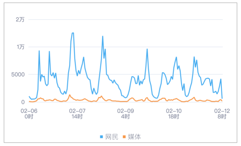 该时段内,境内有关“2026米兰冬奥会开幕”的舆情信息,媒体舆情于02月07日08时达到最高峰,网民舆情于02月07日11时达到最高峰。