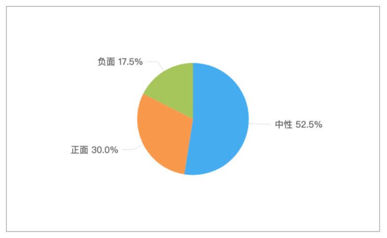 在该时段内,境内有关“养龙虾”热潮风靡AI圈的舆情情感倾向中,中性舆情占比最多,为52.5%;正面舆情次之,占30.0%;负面舆情较少,占17.5%。