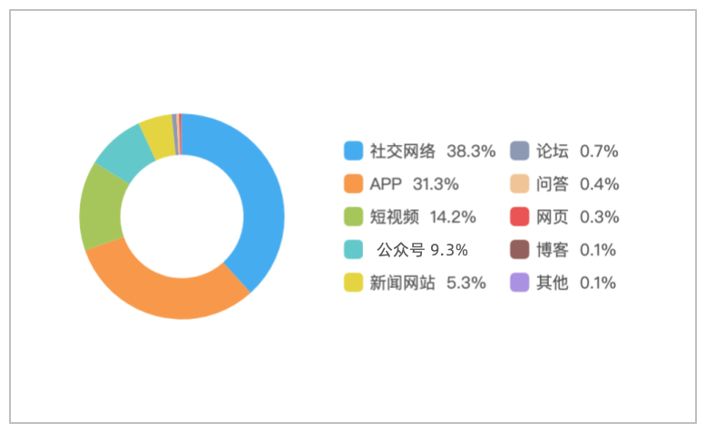 该时段内,境内有关““养龙虾”热潮风靡AI圈”的舆情主要集中在社交网络平台,相关舆情量约占总量的38.3%,其次为新闻APP约占31.3%,短视频约占14.2%。
