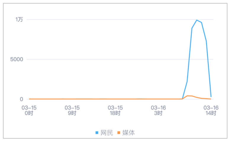 该时段内,境内有关“湖南某医院一失联研究生坠江离世”的舆情信息,媒体舆情于03月16日09时达到最高峰,网民舆情于03月16日11时达到最高峰。