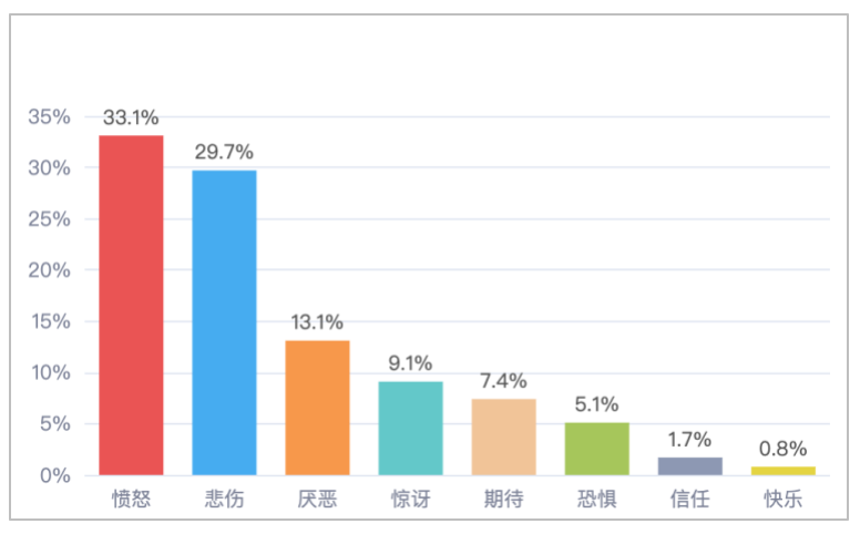 该时段内,通过对有关“湖南某医院一失联研究生坠江离世”的网民言论进行情感倾向分析,大众情绪分布如下: