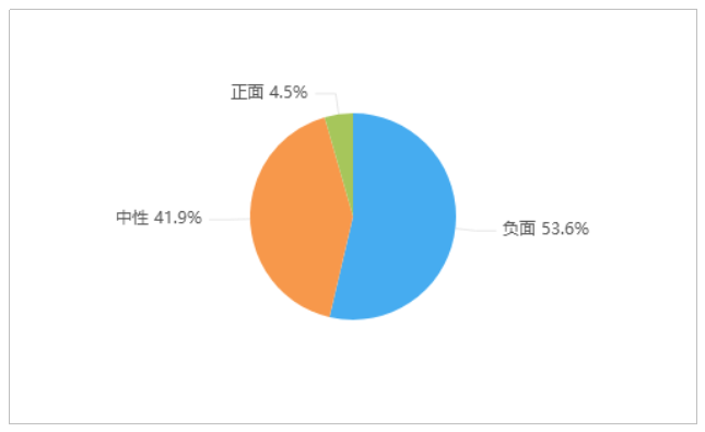 由上图可以看出,关于“山东临沂一货车压塌桥面”的舆情情感倾向中,负面舆情占比最多,达到53.6%;其次是中性舆情,占41.9%;正面舆情较少,仅占4.5%。
