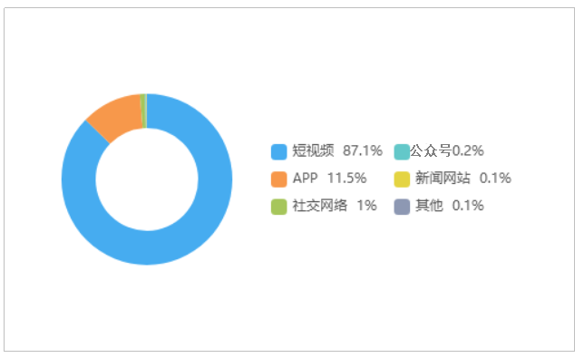 由上图可以看出,有关“山东临沂一货车压塌桥面”的舆情主要集中在短视频平台,相关舆情量,占总量的87.1%,其次为新闻APP占11.5%,社交网络占1.0%。