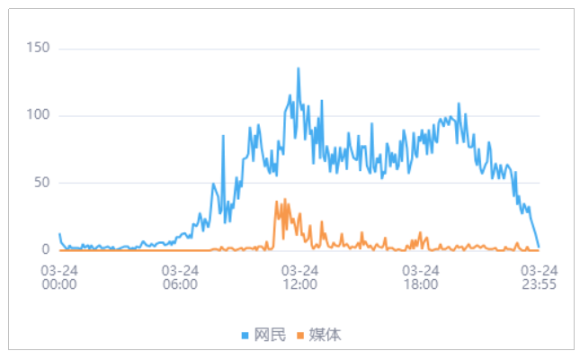 由上图趋势可以看出,有关“南京一教师被指课堂上贬低学生”的媒体舆情于03月24日11时15分达到最高峰,网民舆情于03月24日11时55分达到最高峰。