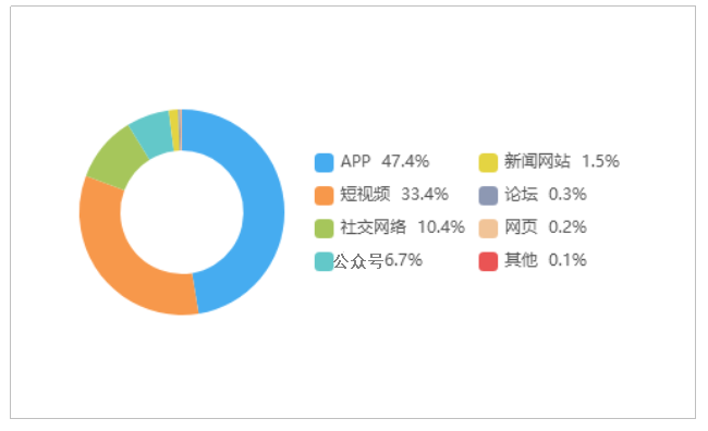 由上图可以看出,有关“太原一高层建筑发生火灾”的舆情主要集中在新闻APP平台,相关舆情量占总量的47.4%,其次为短视频占33.4%,社交网络占10.4%。