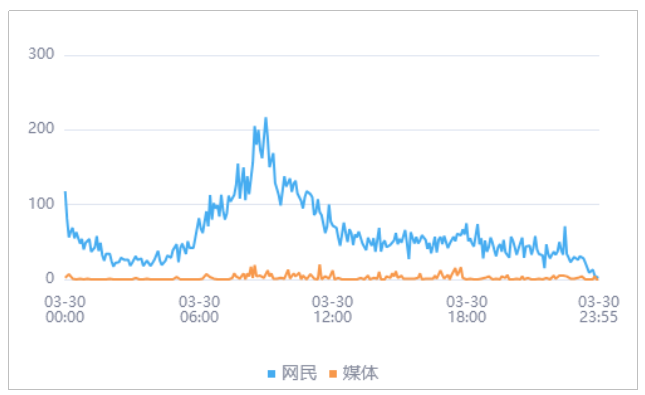 由上图趋势可以看出,有关“太原一高层建筑发生火灾”的媒体舆情于03月30日11时25分达到最高峰,网民舆情于03月30日09时00分达到最高峰。