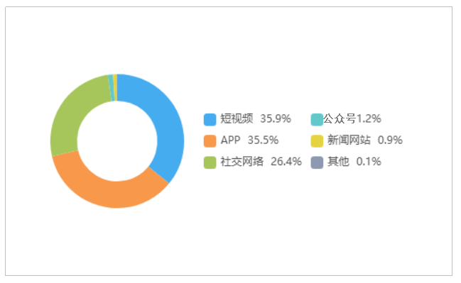 由上图可以看出,有关“太原暴走团凌晨四点播放音乐扰民”的舆情主要集中在短视频平台,相关舆情量,占总量的35.9%,其次为新闻APP占35.5%,社交网络占26.4%。