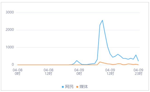 由上图趋势可以看出,有关“西湖连续一周撒7吨漂白粉”的媒体舆情于04月09日08时达到最高峰,网民舆情于04月09日09时达到最高峰。