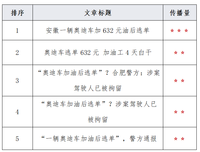 舆情简评|一奥迪车在合肥加完油后逃单