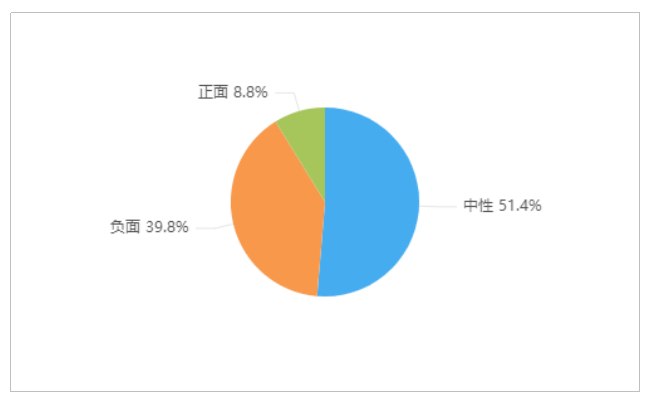 由上图可以看出,有关“深圳一楼盘保安喷辣椒水驱散买房人群”的舆情中,中性舆情占比最多,为51.4%;负面舆情占比次之,为39.8%;正面舆情占比较少,仅为8.8%。