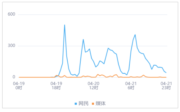 由上图趋势可以看出,有关“云南高中生因操行分被劝退”的媒体舆情于04月20日14时达到最高峰,网民舆情于04月19日22时达到最高峰。