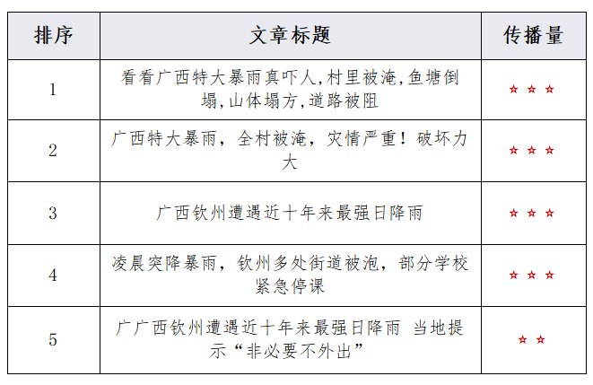 1. 核心传播由权威媒体与政务账号主导,叙事框架统一。人民网、央广网、新华社及“广西日报”、“中国消防”等央地级媒体、政务微博,构成了信息传播的主渠道。其报道框架高度一致:强调降雨的极端性与历史性 -> 说明政府启动应急响应 -> 展现消防、武警等力量救援转移场景 -> 发布安全提示。此框架成功将公众注意力导向“共同应对自然灾害”,而非“追究责任”。